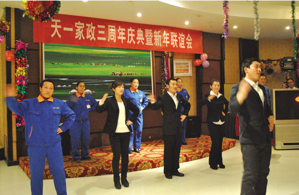新春佳節(jié)來(lái)臨之際,錫盟天一家政服務(wù)有限責(zé)任公司舉報(bào)公司成立三周年慶典暨新春聯(lián)誼會(huì),總結(jié)工作,表彰先進(jìn)。公司全體員工歡聚一堂,暢想未來(lái),喜迎新春佳節(jié)。