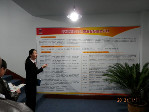 2013年11月,錫盟天一家政公司總經(jīng)理周曉華會同錫盟就業(yè)局、勞動局、民政局領(lǐng)導(dǎo)赴包頭、呼市、集寧對家政服務(wù)業(yè)進(jìn)行了考察學(xué)習(xí)。