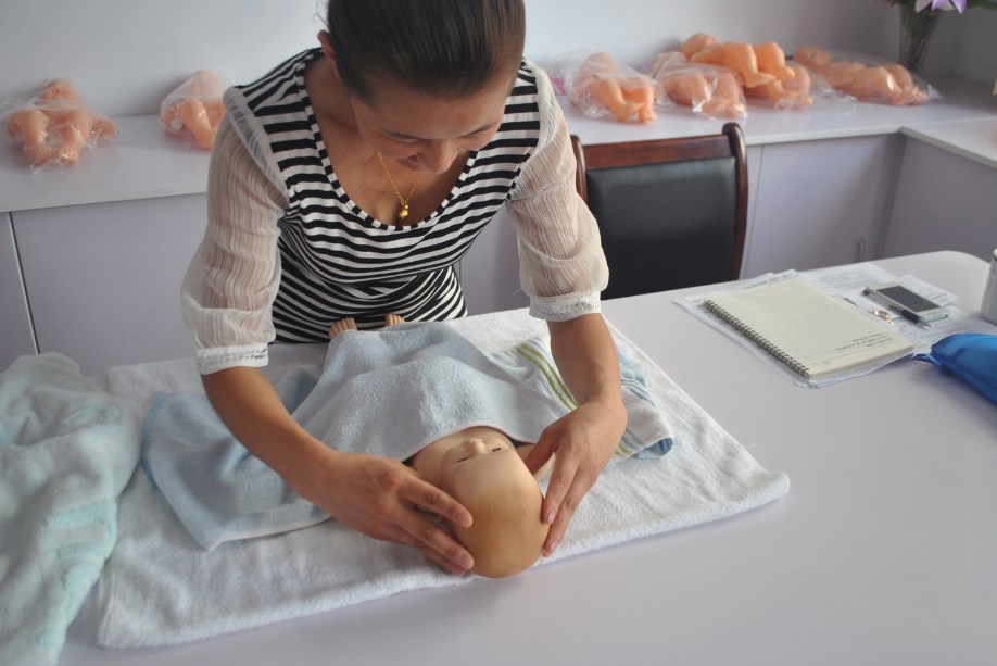 參賽人員高娃進(jìn)行了新生兒護(hù)理的實際操作演練。她專業(yè)、輕柔的撫觸使嬰兒倍感舒適。